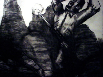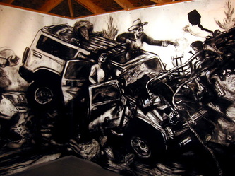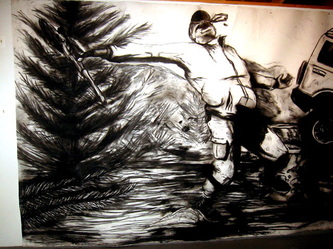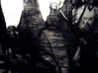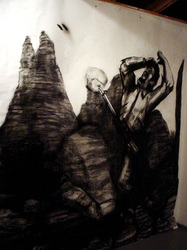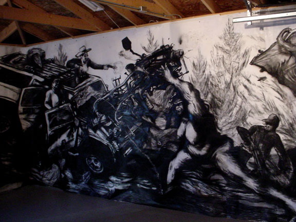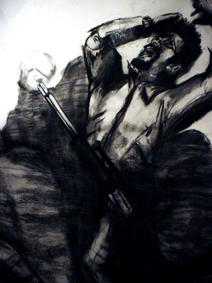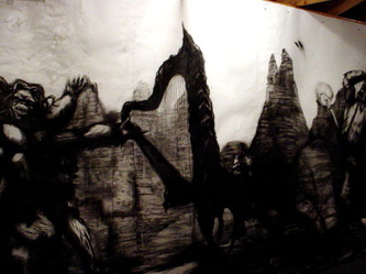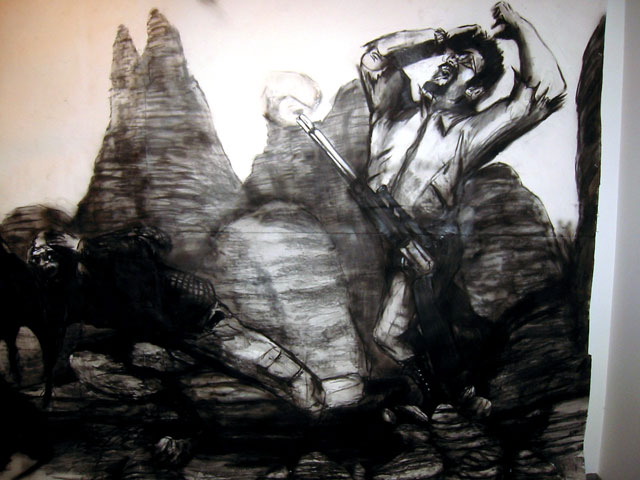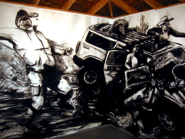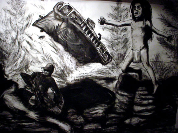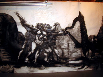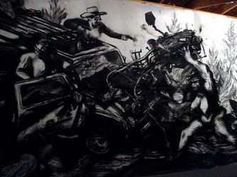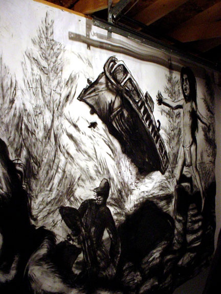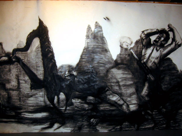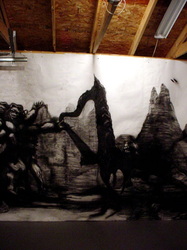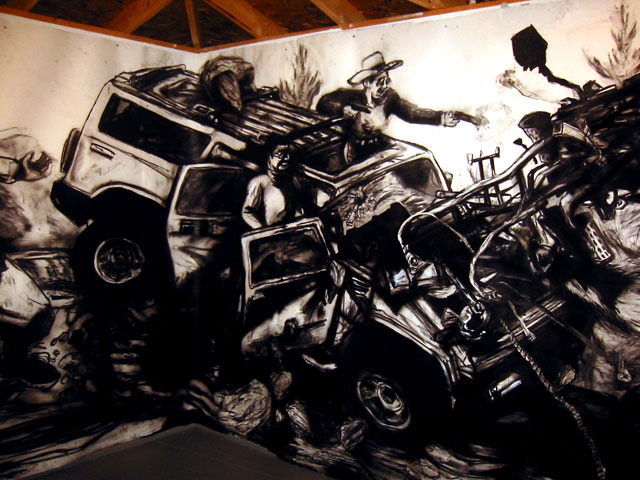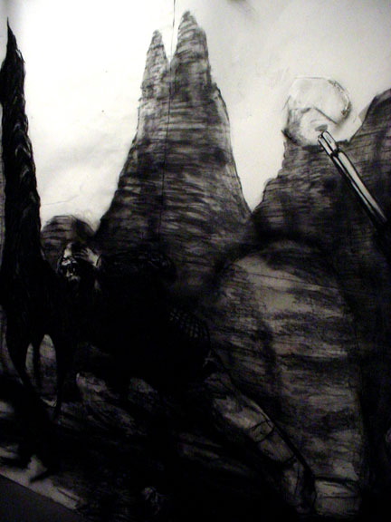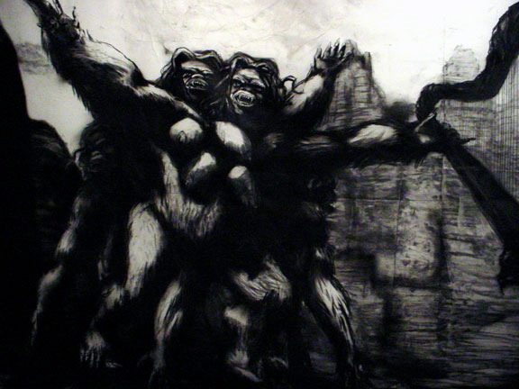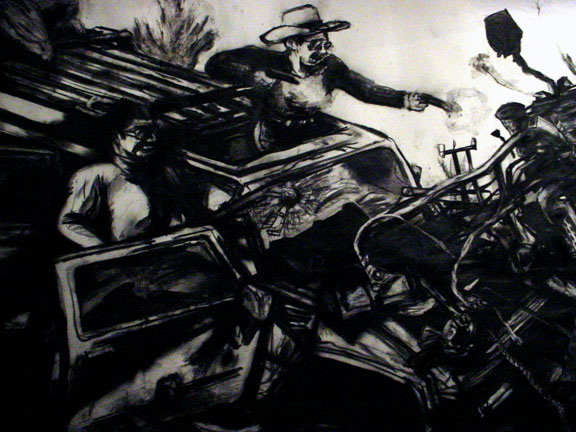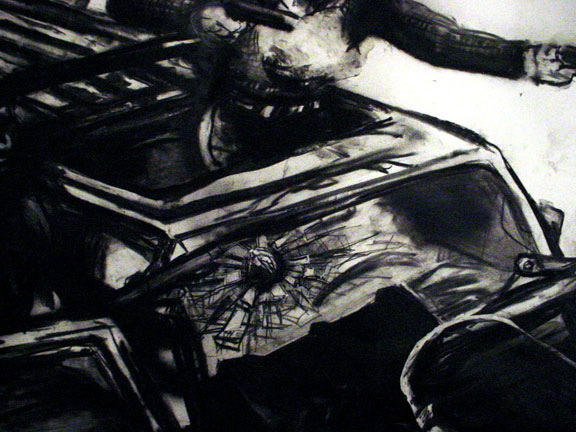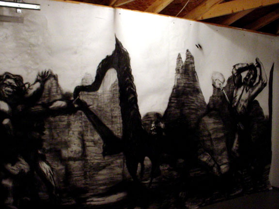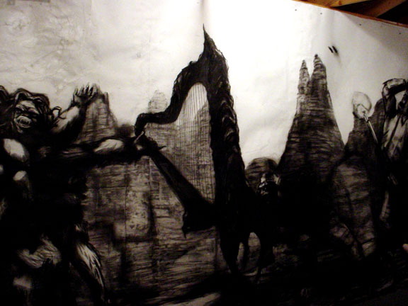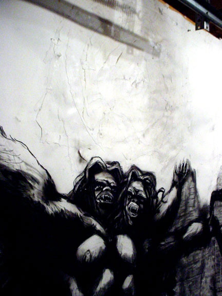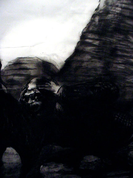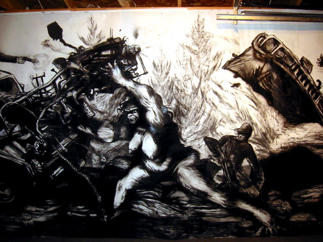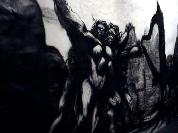 Kala Destroy Man-chine! 33ft. x 8 ft. (detail) 004, charcoal, ink, collage, and acrylic on paper.