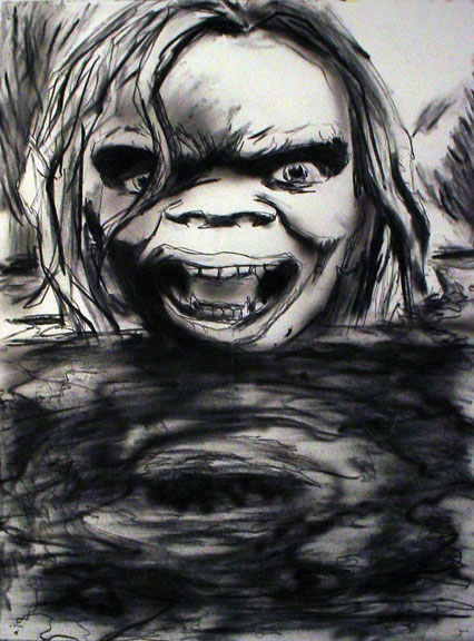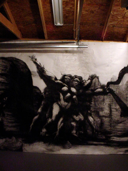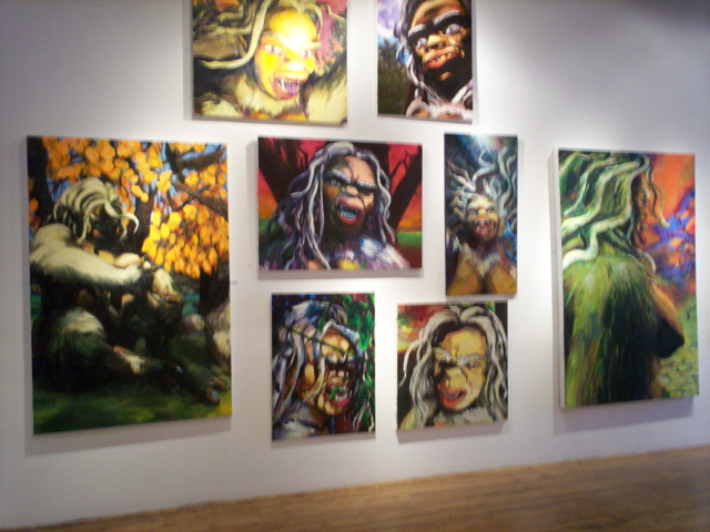 It took me a while to make up my mind about Jason Robert Bell's 'Kala' series, which was most recently represented in Chicago at the NOVA Young Art Fair in late April and as 'Untamed Beauty: Kala Versus the World of Men' at Suitable gallery last November, because the paintings and drawings of the adventures of his lady-sasquatch are simultaneously ugly and beautiful, awkward and graceful, sophomoric and profound. Watching the series grow in Bell's Brooklyn studio over the past three years, I've come to believe these are crazy, remarkable works -- and a great deal of their greatness lies in this nagging bipolarity. I keep thinking about them.