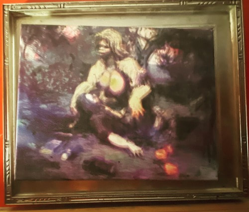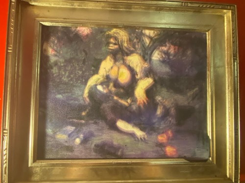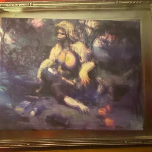 Kale! The Rapture of a Cryptozoologist 2021, mixed media on canvas (9x12 inches) with custom frame.