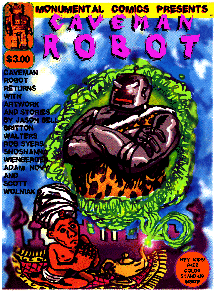 Caveman Robot Returns #2published in an edition of 100, each came with a Caveman Robot Standee- Made from liberated material from JRB's then employer. Stories included - If This Be Not Me parts 1 and 3 by Britton Walters, If This Be Not Me parts 2 by by Rob "Arvid-Busey" Syers, With intro pages by Jason Robert Bell, Waiting for Caveman Robot byAdam Novy, Caveman Robot Fun and Games by by Shoshanna Weinberger, A message from C.R.E.A.T. by Scott Wolniak on the back cover. SOLD OUT All work is the copyright of the Artist- © 1996 |