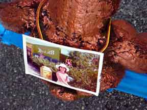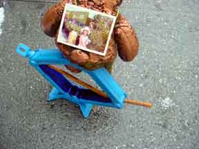 plastic, Fake fur, batting, epoxy, cloth tape, and color photo- The